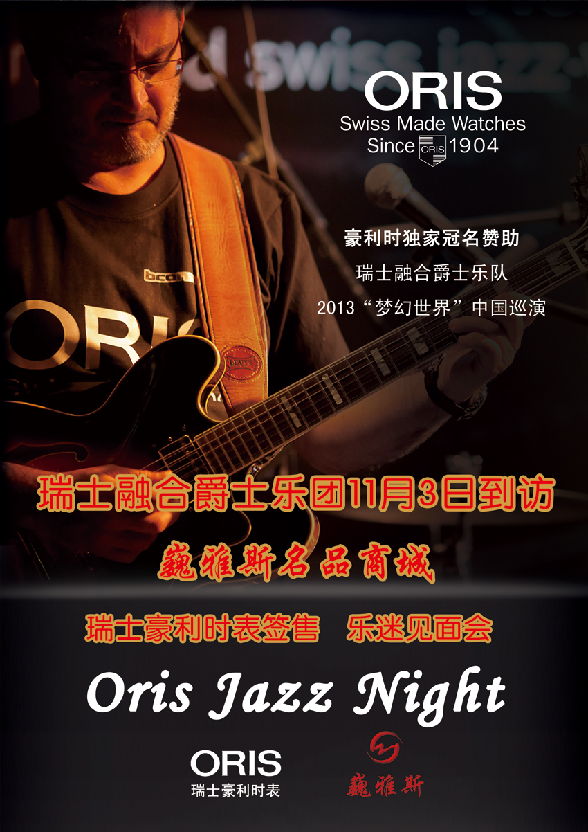 本次巡演活動(dòng),是繼2012年融合樂(lè)團(tuán)來(lái)訪巍雅斯名表眼鏡行后,瑞士融合爵士樂(lè)團(tuán)與瑞士豪利時(shí)表再度來(lái)到蘭州,攜手巍雅斯名表眼鏡有限公司,展開簽售、歌迷見面等一系列活動(dòng)。瑞士豪利時(shí)手表和融合樂(lè)團(tuán)選擇巍雅斯名品商城的主要原因,在于巍雅斯對(duì)完美堅(jiān)持不懈的追求,這一點(diǎn)與融合爵士樂(lè)團(tuán)一直以來(lái)對(duì)藝術(shù)的堅(jiān)持不懈非常吻合。巍雅斯37年來(lái)始終堅(jiān)持以信譽(yù)為根本,真心誠(chéng)意的為廣大消費(fèi)者著想,才讓巍雅斯以其強(qiáng)大的品牌號(hào)召力,吸引了260多家國(guó)際知名手表、眼鏡和六福黃金珠寶品牌的青睞。發(fā)展成為我國(guó)較大的、較具特色的鐘表、眼鏡、黃金珠寶經(jīng)營(yíng)公司之一。