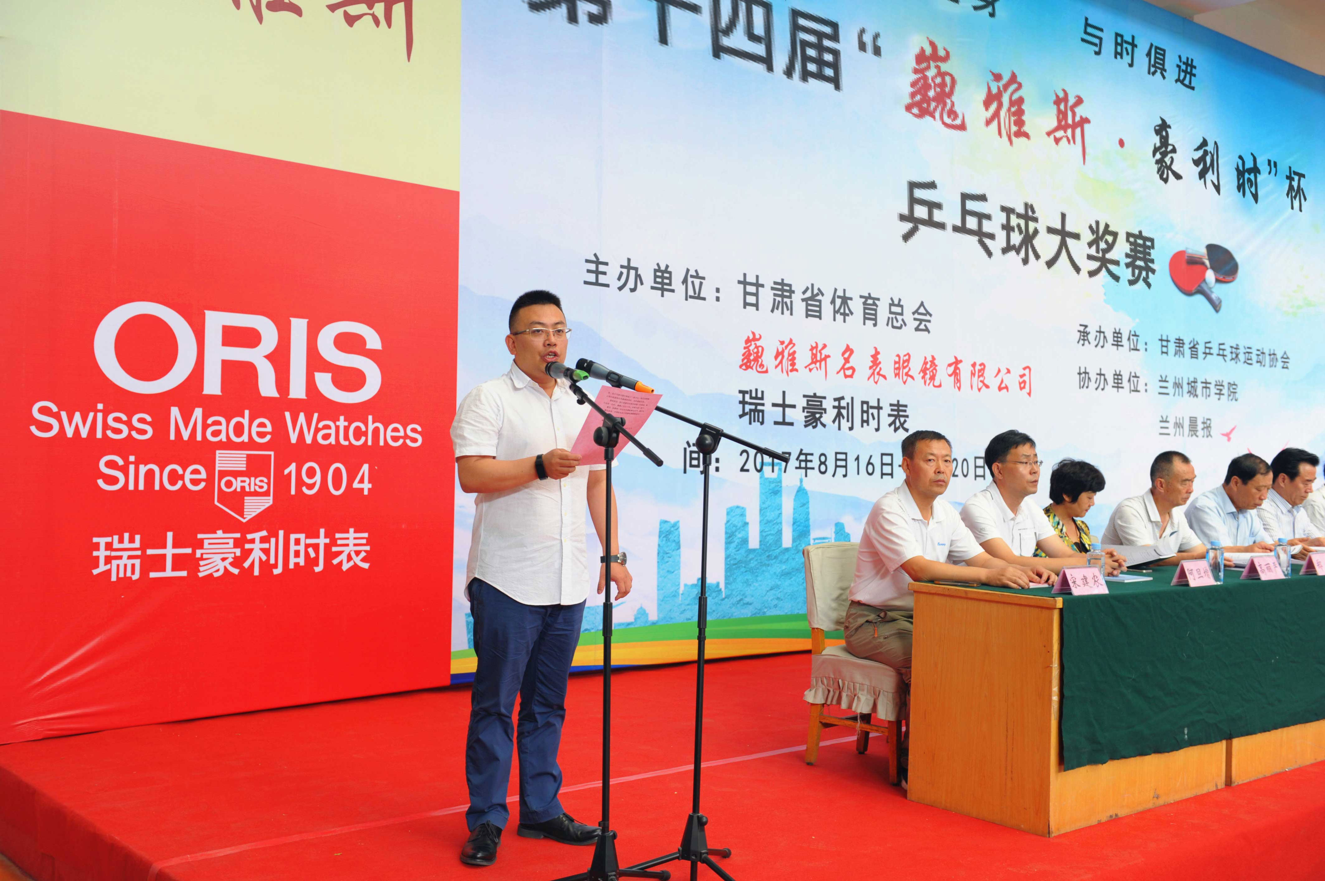 中國商業(yè)聯(lián)合會鐘表商分會副會長、甘肅省眼鏡協(xié)會會長、甘肅省乒乓球協(xié)會副會長、巍雅斯名表眼鏡有限公司董事長裴正江,瑞士豪利時表中國區(qū)總經(jīng)理嚴明輝先生及有關(guān)領(lǐng)導、運動員、裁判員、教練員、工作人員一千兩百多人參加了簡樸但氣氛熱烈的大獎賽開幕式。