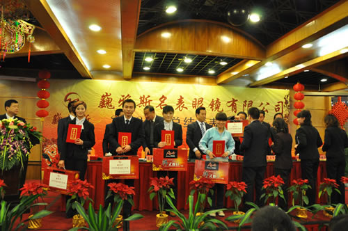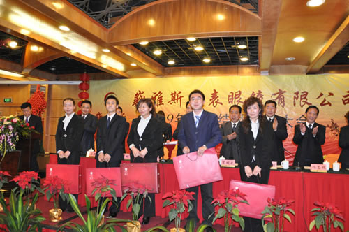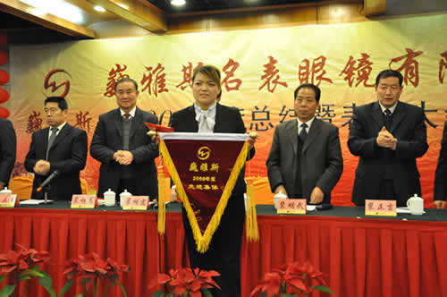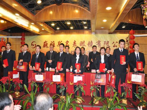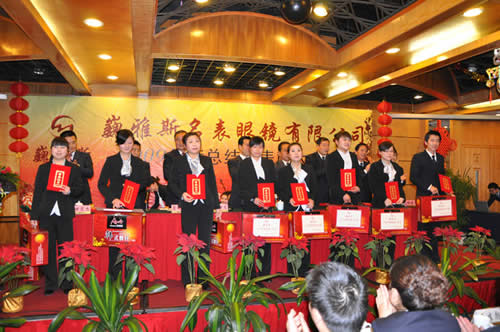 巍雅斯名表眼鏡有限公司2009年度年終總結(jié)暨表彰大會于2月1日在蘭州錦江陽光大酒店順利召開。會上董事長向來自甘肅、陜西、寧夏、青海等地區(qū)公司的200多名員工代表及管理人員做了2009年工作報告,對各個公司09年的工作及業(yè)績進行了概括總結(jié),同時提出了2010年的工作要求。 會上還對09年涌現(xiàn)出來的鐘萍等41位先進工作者和維修部及西太華名表城兩個先進集體進行了表彰獎勵。