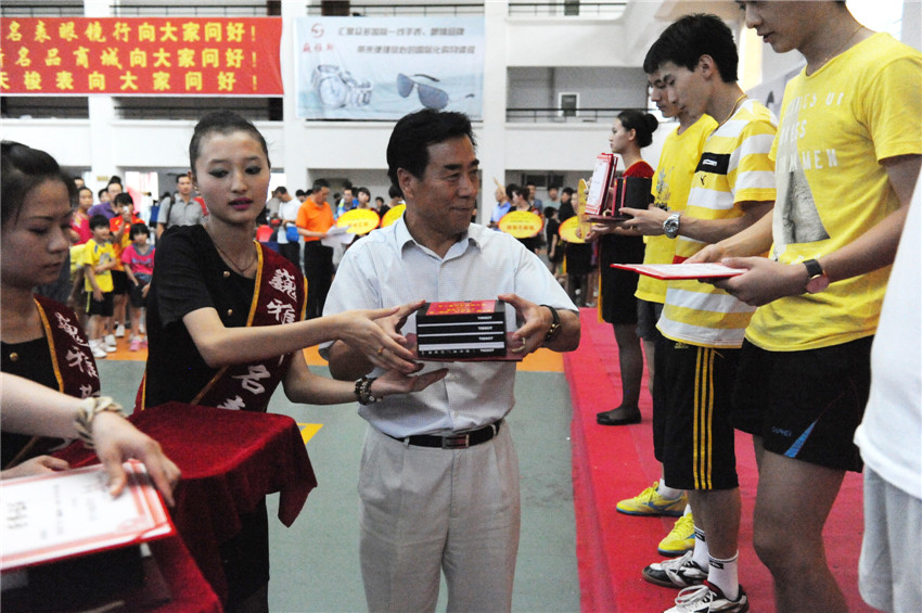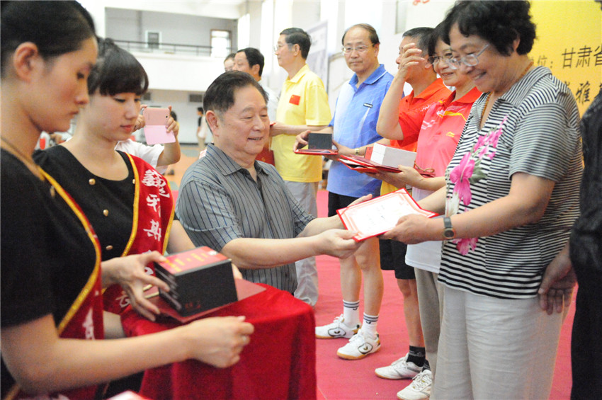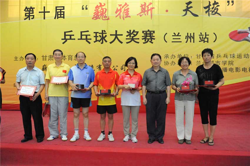 經(jīng)過(guò)5天的激烈角逐,由甘肅省體育總會(huì)、巍雅斯名表眼鏡有限公司和瑞士天梭表主辦,甘肅省乒乓球協(xié)會(huì)承辦,蘭州城市學(xué)院、甘肅省廣播電影電視總臺(tái)、蘭州晨報(bào)協(xié)辦的,全民健身與時(shí)俱進(jìn),第十屆“巍雅斯?天梭”杯乒乓球大獎(jiǎng)賽(蘭州站),于8月18日在蘭州城市學(xué)院培黎體育館落下帷幕。國(guó)際乒乓球聯(lián)合會(huì)終身名譽(yù)主席、原國(guó)家體育運(yùn)動(dòng)委員會(huì)副主任徐寅生專程從上海趕來(lái),甘肅省政協(xié)副主席張景輝、蘭州軍區(qū)政治部副主任王文杰、原甘肅省十屆人大副主任吳碧蓮、原蘭州軍區(qū)副參謀長(zhǎng)楊旭華、原蘭州軍區(qū)空軍副參謀長(zhǎng)欒連續(xù)、甘肅省體育局局長(zhǎng)楊衛(wèi)、蘭州城市學(xué)院院長(zhǎng)王汝峰、中國(guó)鐘表商會(huì)副會(huì)長(zhǎng)、甘肅省眼鏡協(xié)會(huì)會(huì)長(zhǎng)、甘肅省乒協(xié)副主席、巍雅斯名表眼鏡有限公司董事長(zhǎng)裴正江、甘肅省司法廳巡視員、甘肅省乒協(xié)副主席張克年、甘肅省乒乓球運(yùn)動(dòng)協(xié)會(huì)主席穆端敏、甘肅省體育總會(huì)常務(wù)副秘書(shū)長(zhǎng)丁思林等領(lǐng)導(dǎo)出席了閉幕儀式,并為運(yùn)動(dòng)員頒獎(jiǎng)。原蘭州軍區(qū)副參謀長(zhǎng)楊旭華致閉幕詞,宣布本屆大獎(jiǎng)賽閉幕。   第十屆“巍雅斯·天梭”杯大獎(jiǎng)賽單打比賽成績(jī)