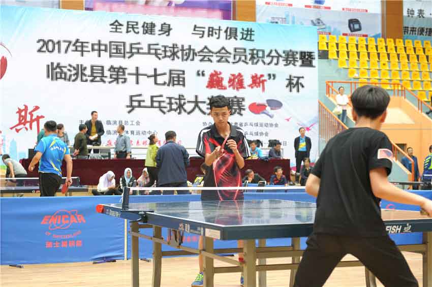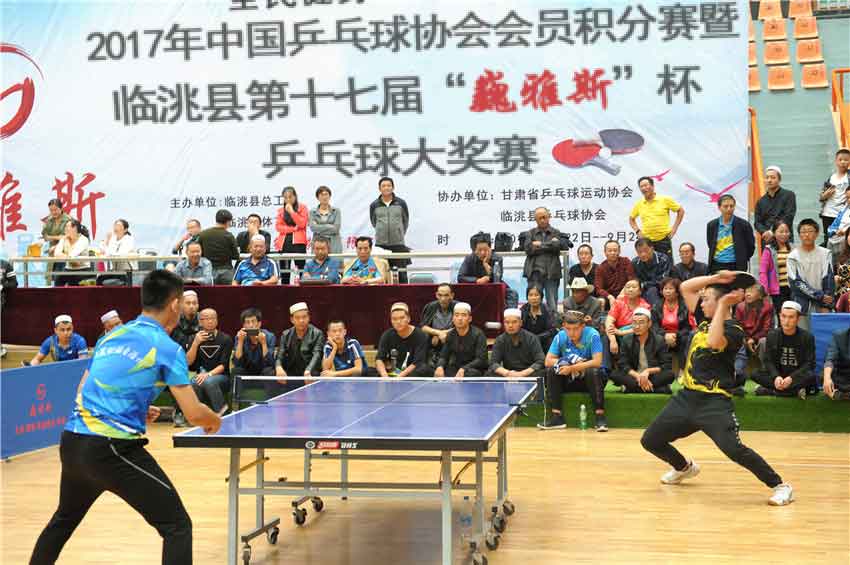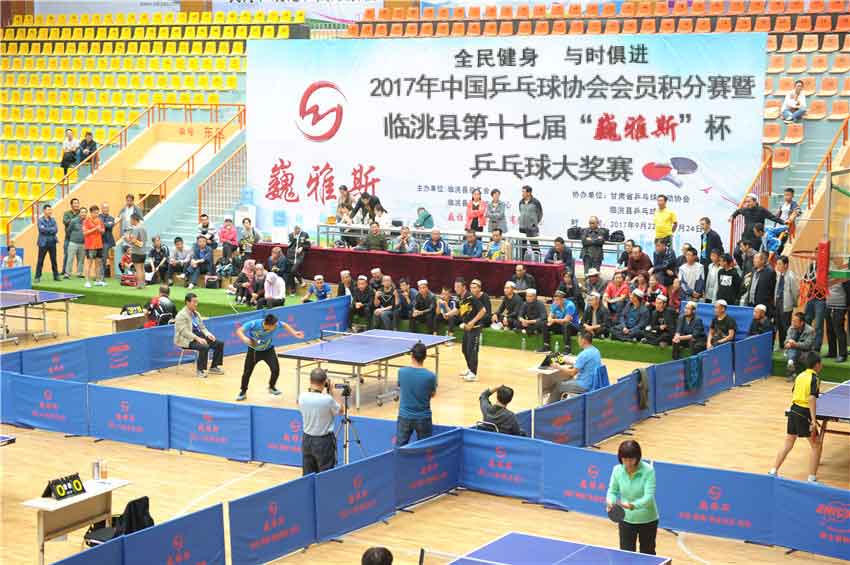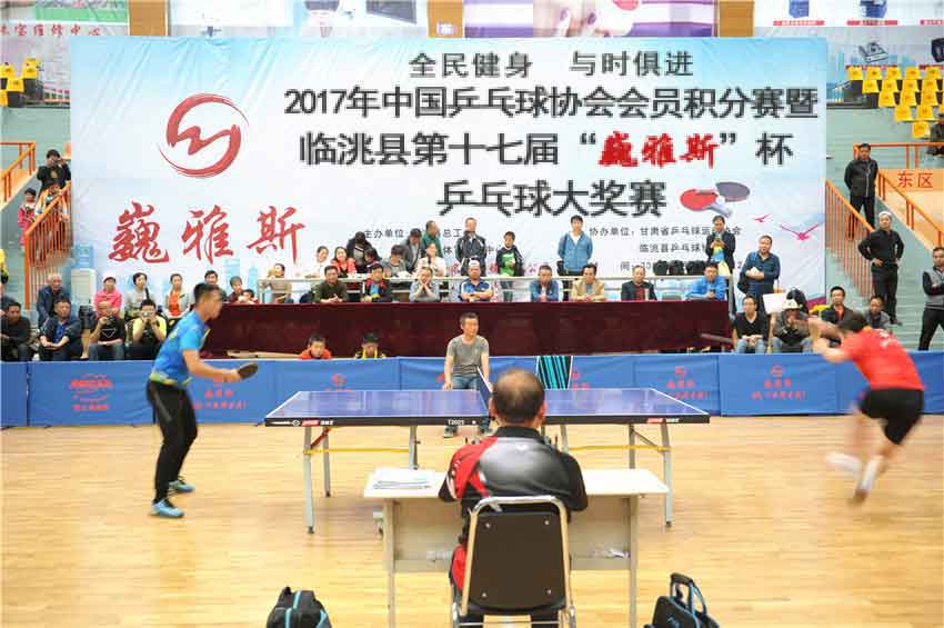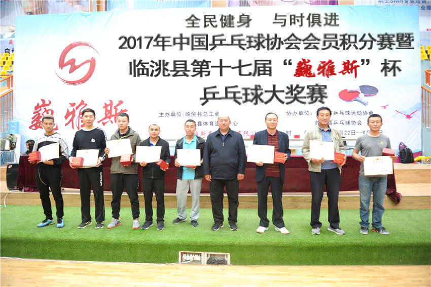 2017年中國乒乓球協(xié)會會員積分賽暨第十七屆臨洮縣“巍雅斯”杯乒乓球大獎賽,經(jīng)過三天緊張激烈的角逐,各個組別的男女團體和單打別名次全部產(chǎn)生。9月24日下午,進行了本次比賽極為精彩的成年男子組冠亞軍決賽,并舉行了頒獎儀式。