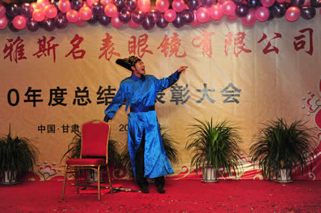 2011年1月18日,巍雅斯名表眼鏡有限公司2010年度總結(jié)暨表彰先進(jìn)大會(huì)在蘭州錦江陽(yáng)光酒店舉行,來(lái)自西安、銀川、西寧、拉薩、天水等地的部分員工240多人歡聚一堂,共敘友誼、共商發(fā)展,會(huì)餐后舉辦了豐富多彩的聯(lián)歡晚會(huì)。前來(lái)走訪的以經(jīng)營(yíng)古馳、迪奧、BOSS、阿瑪尼等高端眼鏡品牌為主的意大利霞飛諾集團(tuán)中國(guó)區(qū)總裁雅各布(Jacopo)先生及日本尼康鏡片西北區(qū)業(yè)務(wù)經(jīng)理張海青先生也興致勃勃的參加了晚宴和聯(lián)歡晚會(huì)。